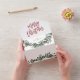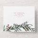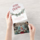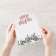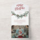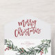 Une carte de Noël festive, rouge, verte et blanche, avec un script audacieux et une verdure aquarelle avec des feuilles et des baies. Fait une grande carte de voeux personnelle ou d'affaires pour les vacances.