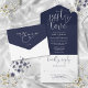 Invitation Tout En Un Just Love Élégant Script Mariage bleu marine