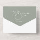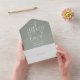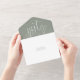 Cette faire-part de mariage minimaliste tout-en-un présente une typographie élégante sur un arrière - plan vert sage. L'invitation comprend une carte RSVP perforée qui peut être adressée individuellement ou laissée vide afin que vous puissiez écrire à la main les coordonnées de votre invité. Conçu par Thisisnotme©
