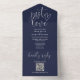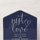 Invitation Tout En Un Just Love Modern QR Code Mariage bleu marine