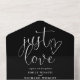 Invitation Tout En Un Juste Aimer Élégant Script Mariage noir et blanc