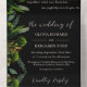 Moody foncé tout dans un design mariage, avec une bordure vert émeraude de bois vert profond sur un arrière - plan noir. Avec la fonctionnalité ajoutée d'un code QR personnalisé qui peut être lié à votre URL de site Web mariage. Cliquez sur le bouton Personnaliser et ajoutez l'URL de votre site Web à la zone fournie et un code QR unique flambant nouveau sera généré sur la conception, qui dirigera vos invités vers votre site Web mariage à RSVP en ligne.