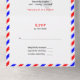 Un design de mariage amusant mais élégant de destination avec une carte silhouette de Las Vegas, Nevada et bien connu Signe avec de mignonnes marques de postage et des bandes d'avion rouge, blanc et bleu. Agréable et facile à customiser avec vos coordonnées de mariage personnel et une carte RSVP pratique déchirer pour votre commodité.