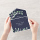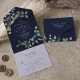 Cette lavande rustique et cette mariage bleu marine d'eucalyptus, le tout dans une seule invitation, est parfait pour une mariage extérieure simple et élégante. Le design floral présente des feuilles d'eucalyptus aquarelle et de la verdure avec des sprigs de fleurs sauvages violets. Écrivez vos adresses d'invités à l'arrière de l'invitation pliée, ou achetez les autocollants de étiquette de adresse d'invités de coordination (vendus séparément).