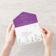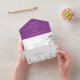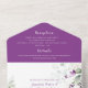 Ressorts de lavande violette luxuriants et somptueux avec bourgeons coordonnés et verdure. Le RSVP est perforé ce qui permet de déchirer et de renvoyer facilement. La carte postale est la taille correcte pour l'envoi par USPS au prix d'affranchissement inférieur, et le rabat arrière qui chevauche la carte postale est assez grand pour couvrir l'adresse de retour et les sections de timbres pour éviter la confusion avec l'envoi. Personnalisez avec vos propres informations.