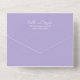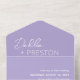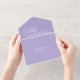 Le code QR moderne lavande / violet tout en une faire-part de mariage avec un design simple et minimal avec le nom de la mariée dans un script élégant et le nom du marié dans une police sans serif contemporaine. Vous trouverez ci-dessous, dans le coin inférieur droit, les détails de votre événement dans un agencement minimaliste. Si vous préférez, le code QR peut être supprimé dans l'outil d'édition de conception.