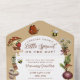 Celebrate your locally grown little sprout with this whimsical garden‑themed baby shower invitation. Adorned with playful illustrations of vegetables, fruits, mushrooms, and cheerful garden details, this all‑in‑one card makes planning simple. Along with event details and RSVP information, it features a diaper raffle section to add extra fun and prizes to your celebration. Perfect for rustic, nature‑inspired, or farmer’s market‑style showers, this invitation is easy to personalize with your names, venue, and date.