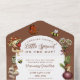 Celebrate your locally grown little sprout with this whimsical garden‑themed baby shower invitation. Adorned with playful illustrations of vegetables, fruits, mushrooms, and cheerful garden details, this all‑in‑one card makes planning simple. Along with event details and RSVP information, it features a diaper raffle section to add extra fun and prizes to your celebration. Perfect for rustic, nature‑inspired, or farmer’s market‑style showers, this invitation is easy to personalize with your names, venue, and date.