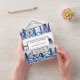 Invitation Tout En Un London City RSVP Aquarelle Bleu Mariage moderne