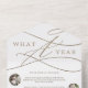 Cet or romantique ce qu'une année de carte de vacances multi photo est la parfaite année simple en révision des voeux de vacances. Le design classique moderne comprend des tourbillons fantaisistes et des fleurs fantaisistes avec une magnifique typographie de feuille d'or en faux champagne. Customisez votre sceau et envoyez une carte de vacances triplée avec 7 photos, un bulletin familial, vos noms et l'année.