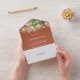 Cette invitation de mariage en terre cuite tout-en-un présente une verdure botanique et de jolies guirlandes lumineuses. L'invitation comprend une carte de réponse perforée qui peut être adressée individuellement ou laissée vierge pour que vous puissiez écrire les coordonnées de vos invités à la main. Conçu par Thisisnotme©
