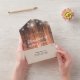 Ces invitations de réception de mariage avec lumières de chaîne en bois rustique et à petit budget sont conçues avec une carte postale RSVP perforée facile à détacher. Il suffit de plier chaque carte dans la forme décrite, puis de sceller et d'envoyer - aucune enveloppe nécessaire pour l'expédition.