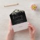 Le tout dans un faire-part de mariage noir et blanc avec verdure botanique, lumières à cordes et typographie élégante. L'invitation comprend une carte RSVP perforée avec votre code QR du site Web mariage et des détails. Conçu par Thisisnotme©