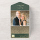 Elégante, moderne, minimale, or de luxe et faire-part de mariage tout-en-un vert émeraude avec photo personnalisée du couple à l'arrière. Ajoutez votre photo, les détails du mariage et rsvp.