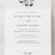 Elégant floral tout en un modèle avec carte rsvp pour une option pratique et économique pour les couples à faible budget. La faire-part de mariage est ornée d'un bouquet de fleurs de magnolia rose aquarelle et de feuilles d'eucalyptus. La carte postale RSVP a votre adresse postale au dos et vos invités vous détachent et vous renvoient un courriel. Ce charmant tout en un faire-part de mariage est idéal pour un mariage de printemps ou d'été.