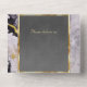 This elegant All In One wedding invitation features a dark grey center on a black and white marble background, framed with gold roses and leaves, embellished with a silver scroll heart. Designed to coordinate with the "Elegant Marble, Gold Leaves Frame & Scroll Heart" Wedding Collection. To change details, click «Personalize». To move the text or change the text size, font, or color click «Click to customize further»