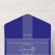 Ce sont des invitations de mariage tout-en-un pratiques avec des cartes postales perforées RSVP faciles à déchirer. Modifiez simplement le texte pour répondre à vos besoins. Montré en bleu marine avec motif floral. Utilisez la partie de l'adresse de retour du modèle si vous souhaitez que l'adresse soit imprimée directement sur la carte postale RSVP ou optez pour les étiquettes d'adresse de retour. Utilisez le modèle pour personnaliser.