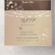 Donnez le ton à votre chute ou à votre mariage campagnard grâce à cette invitation tout-en-un rustique qui comprend un arrière - plan chaleureux à grains de bois, des lampes à cordes et des accents floraux dorés. Les lumières scintillantes et les illustrations florales ajoutent un charme romantique à la grange. Inclut de l'espace pour RSVP, des informations sur les invités, et une photo complète! Un magnifique mélange d'élégance décontractée et de détails personnalisés. Remarque : Cette invitation tout-en-un nécessite une enveloppe distincte pour l'envoi. Nous vous recommandons de l'apparier avec une enveloppe A9 standard (5,75 po x 8,75 po) pour un meilleur ajustement.