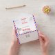 Un design de mariage à destination amusant et élégant avec une carte en silhouette de Las Vegas, Nevada et un panneau connu avec des marques de postage factice mignonnes et des bandes d'envoi par avion rouge, blanc et bleu. Facile à personnaliser avec vos détails de mariage personnels et une carte RSVP détachable pratique pour votre commodité.