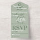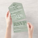 Un design de typographie moderne dans des tons de vert dusty sage et de blanc avec un appariement de polices cool qui se complètent et des symboles gras extra larges font de ceci une annonce de mariage décontractée unique et intéressante ainsi qu'une carte-réponse, le tout en un, sans besoin d'enveloppe. Il est facile de personnaliser en ajoutant simplement vos propres détails dans les modèles.