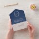 Invitation Tout En Un Mariage blanc bleu foncé ovale feuilles monogramme