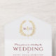 Invitation Tout En Un Mariage blanc or rouge ovale feuilles monogramme