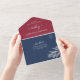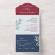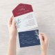 Invitation Tout En Un Mariage Bleu et Bourgogne moderne avec RSVP perfor