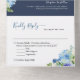 Navy Blue Botanical Hydrangea Flowers Mariage All in One Invitations" sont conçus avec une carte postale RSVP perforée facile à déchirer. Il suffit de plier chaque carte dans la forme esquissée, puis sceller et envoyer - aucune enveloppe nécessaire pour l'expédition.