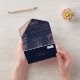 Invitation Tout En Un Mariage bleu marine confetti pailleté or rose