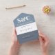 Vos invités seront ravis de voir ce faire-part de mariage bleu poussiéreux distinctif dans leur boîte aux lettres. À l'ouverture, ils verront votre monogramme et vos noms dans un texte blanc immaculé sur un arrière - plan bleu poussiéreux sur le panneau supérieur. Le panneau central et la carte postale RSVP amovible ont un arrière - plan blanc avec un texte bleu foncé. Ce Touch of Blue Ampersand est un design de typographie propre qui fait une déclaration simple mais élégante. Un classique moderne et élégant avec une ambiance artistique et fleurie. Ce tout-en-un fonctionne bien pour un mariage et une réception au même endroit. Ajoutez votre site Web mariage à la carte principale pour partager plus de détails avec les invités. La carte RSVP comprend un rappel de date de réponse et un espace pouvant accueillir jusqu'à trois choix de menu.
