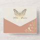 Une invitation de mariage bohème de printemps pêche unique en son genre, avec un papillon doré faux romantique qui symbolise la renaissance spirituelle, l'espoir et la vie. Ce design élégant exsude charme et signification profonde. Personnalisez-le avec vos informations de mariage et de RSVP pour un effet vraiment inoubliable.