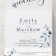Notre "All-in-One Invitation & RSVP Card" de la dernière collection de Vintage Nordica - un choix parfait pour votre mariage rustique, boho ou jardin. Ce design pratique et 2 en 1 est particulièrement idéal pour do-it-yourself mariages, ce qui évite les tracas de la planification mariage. Insufflée de teintes apaisantes de vert et de bleu, la carte dégage un charme naturel et serein grâce à son aquarelle minimaliste. Des éléments botaniques délicats apportent une touche classique, s'insérant parfaitement dans tout thème mariage tout en se démarquant. Ne vous arrêtez pas aux invitations ! Nous vous encourageons à explorer le reste de la collection "Botanical Elegance" pour un ensemble complet et harmonieux de papeterie mariage. Des notes de remerciement aux étiquettes de retour, aux étiquettes cadeaux et aux boîtes de cadeaux de fête - nous avons tout couvert, assurant une esthétique cohésive qui laissera une impression durable.
