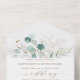 Invitation Tout En Un Mariage botanique aquarelle or et vert Tout compri