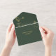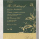 Elégant style formel fleuri or botanique et vert émeraude foncé avec RSVP avec carte d'options de repas inclus avec un script de calligraphie élégant formel et des branches florales de style art linéaire avec feuillage. ++++++++++ Facile à personnaliser avec vos détails et avec le/les nom(s) et adresse(s) individuel(s) préimprimé(s).