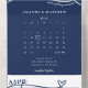 Marine bleu et blanc tout en un faire-part de mariage avec ligne cardiaque et calendrier. Personnalisez-le avec les détails de votre événement. Utilisez l'éditeur pour déplacer le coeur à votre date mariage.