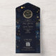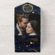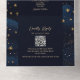Découvrez la magie céleste de votre histoire d'amour avec notre unique Faire-part de mariage moderne céleste tout en un. Orné d'un monogramme d'or unique romantique au-dessus d'une scène fascinante de la lune et des étoiles, il présente une photo chère du couple. Incluez votre photo, votre site Web et votre code QR pour RSVP et des informations supplémentaires, en créant une invitation personnalisée qui éclaire la beauté de votre voyage ensemble sous la canopée céleste.