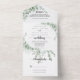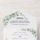 Ce mariage vert classique de feuillage d'eucalyptus, le tout dans une invitation, est parfait pour un mariage rustique. Le design présente de beaux feuilles d'eucalyptus vert aquarelle. Enregistrez du papier en incluant plus de détails dans l'invitation plutôt que sur une carte de boîtier séparée.