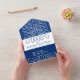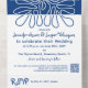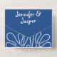Design élégant et spectaculaire avec bleu marine et blanc foncé, avec une forme organique abstraite. Cette unique faire-part de mariage artistique tout en un possède des ondes océaniques côtières et tout le nécessaire pour vos invités en un seul endroit : invitation et retour carte RSVP. Le RSVP comprend des options de menu avec trois options. La partie principale de l'invitation, qui restera avec le client inclut les détails essentiels avec un endroit pour votre site mariage et un code QR afin qu'ils puissent accéder à tous les détails supplémentaires. Tous les textes et les couleurs peuvent être customisés dans l'outil de conception.