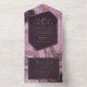 Vous obtenez à la fois le glamour et l'impact élevé avec cet ensemble de mariage de coordination qui comprend des motifs d'agate abstraits, texturés avec des faux cristaux et des reflets dans un film d'or scintillant. Des combinaisons de couleurs éclatantes, comme cette suite avec sa palette de luxe allant du raisin muté et du mauve au rose doux orchidée, créent l'arrière - plan pour les pièces de cet ensemble coordonné. Offrez à votre mariage d'hiver ou de soirée une touche moderne passionnante avec ce design créatif. Recherchez ID827 pour voir des choix de couleurs supplémentaires pour cette conception.