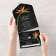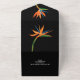 Elégant oiseau tropical de fleurs de paradis sur un arrière - plan noir accent ces invitations de mariage triplé avec vos détails en lettres chic dans les sections sur l'avant et l'arrière et une carte RSVP détachable pour les invités à compléter et revenir. **RAPPELEZ-VOUS de mettre un cachet sur la section carte RSVP et d'inclure des enveloppes sur votre commande pour envoyer des invitations! CORRESPONDRE des articles dans notre magasin.