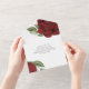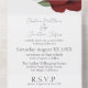 Cette faire-part de mariage romantique présente un design tout-en-un avec une carte R.S.V.P. incluse en bas. L'arrière - plan est un blanc simple et élégant avec des roses rouges à l'aquarelle bordant le haut et le bas. Les fleurs sont un beau rouge riche.
