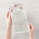 Simplifiez la planification de votre mariage avec ce Mariage Arc Rose Bohème All in One Invitation. Conçu avec des roses bohèmes de rêve, des fleurs d'aquarelle et des accents botaniques doux, l'aménagement comporte une arche boho gracieuse encadrant vos détails mariages. Ce design floral boho est livré avec des paires de scripts élégants avec typographie moderne pour présenter les noms de la mariée et du marié, le tout dans un design joliment plié. Une carte postale RSVP détachable est incluse, ce qui en fait un choix pratique et élégant, surtout pour les couples soucieux de leur budget. Parfait pour les thèmes boho mariage et les couples qui aiment la commodité sans sacrifier l'élégance.