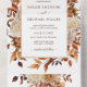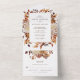 Automne Aquarelle Botanique Feuille Gold Foil Frame Mariage All in One Invitation. Cette faire-part de mariage élégante et rustique présente des feuilles d'aquarelle peints à la main, orange brûlé et terre cuite, des dahlias crème et beige, et de beaux roses de couleur rouille sur un arrière - plan blanc. Tout en un faire-part de mariage et carte RSVP. Les articles correspondants sont disponibles dans la collection de Mariages Romance d'automne.