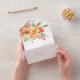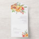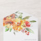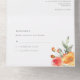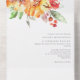 Une belle faire-part de mariage parfaite pour l'automne, qui incorpore une carte postale rsvp pratique déchirante. Ce design présente un agencement de fleurs d'aquarelle orange et de feuilles. Le texte personnalisé est en police grise serif.