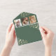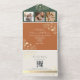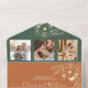 Découvrez la beauté de l'automne avec cette faire-part de mariage tout-en-un rustique en terre cuite et vert olive. Décorée d'élégants motifs floraux dorés, d'un encart photographique et d'un design écologique qui fait office d'enveloppe, cette invitation est parfaite pour les mariages de automne. Customisez-le avec vos détails pour un souvenir unique.