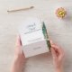 Un coup de peinture turquoise, de parties scintillant dorée et de points dorés se combinent pour donner un côté moderne à cette jolie invitation. Les prénoms de la mariée et du marié sont réalisés dans un style de calligraphie moderne qui se marie bien avec la typographie sans serif moderne également utilisée dans le design. Ce design tout-en-un est également facile sur le budget.