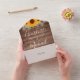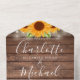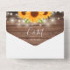 Le tout dans un faire-part de mariage avec de jolis tournesols, des lampes à cordes, des noms de style signature et une typographie chic sur un arrière - plan rustique en bois. L'invitation comprend une carte RSVP perforée qui peut être adressée individuellement ou laissée vide pour que vous puissiez écrire à la main les coordonnées de votre invité. Conçu par Thisisnotme©