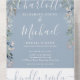 Le tout dans un faire-part de mariage bleu poussiéreux avec de jolies fleurs verdoyantes, des noms de style signature et une typographie chic. L'invitation comprend une carte RSVP perforée qui peut être adressée individuellement ou laissée vide pour que vous puissiez écrire à la main les coordonnées de votre invité. Conçu par Thisisnotme©