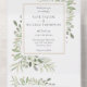 Le tout dans un faire-part de mariage avec d'élégants feuilles botaniques aquarelle et une bordure en or chic. L'invitation comprend une carte RSVP perforée avec votre code QR de site mariage et des détails. Conçu par Thisisnotme©