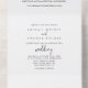 Cette calligraphie mariage de script élégant tout en une invitation est parfait pour un mariage rustique. Le design sobre et élégant présente une typographie de script classique et sophistiquée en noir.
